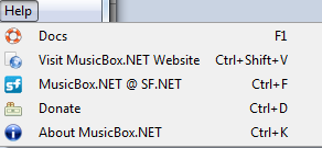 MusicBox.NET Help Menu Item